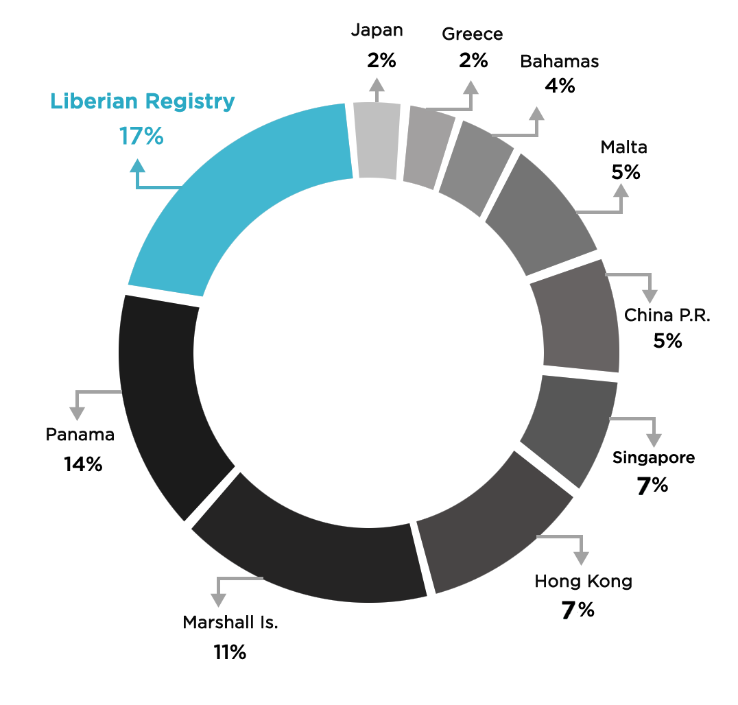 As the largest ship registry in the world, the Liberian Registry has a long-established track record of combining the highest standards of safety for vessels and crews with the highest levels of responsive and innovative service to owners. These combined efforts have made The Liberian Registry the fastest-growing Flag State in the world with over 286 million Gross Tons, giving Liberia 16.62% of the world’s market share.