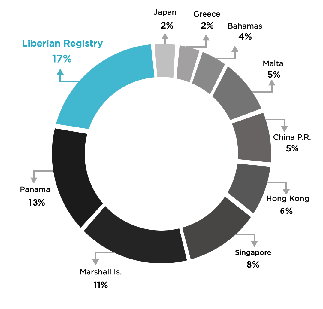 As the largest ship registry in the world, the Liberian Registry has a long-established track record of combining the highest standards of safety for vessels and crews with the highest levels of responsive and innovative service to owners. These combined efforts have made The Liberian Registry the fastest-growing Flag State in the world with over 286 million Gross Tons, giving Liberia 17% of the world’s market share.